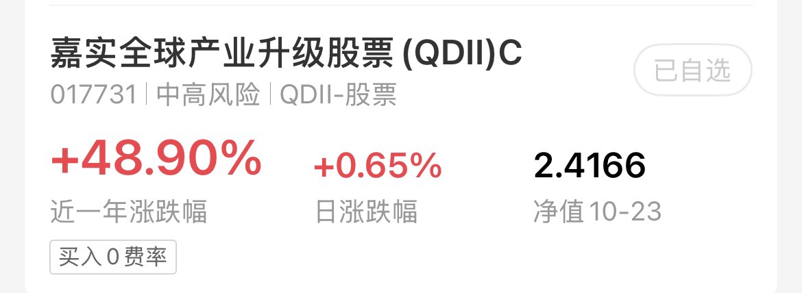 这支$嘉实全球产业升级股票(QDII)C$,这支今晚预计涨幅超2%,纳指期货又拉