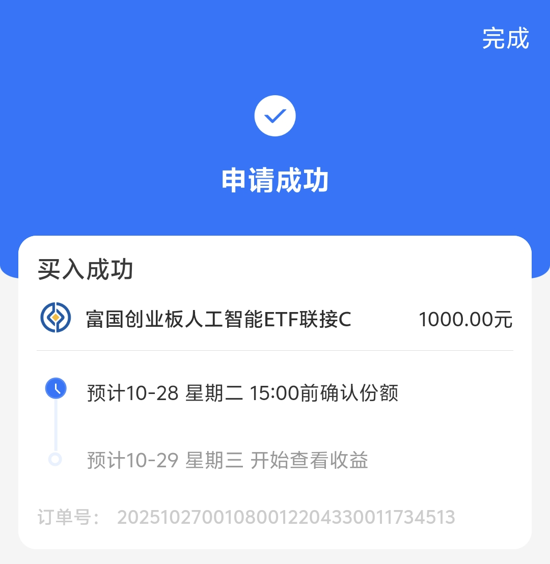 最近开始整理自己的基金持仓,发现$富国创业板人工智能ETF发起式联接C$还挺符合