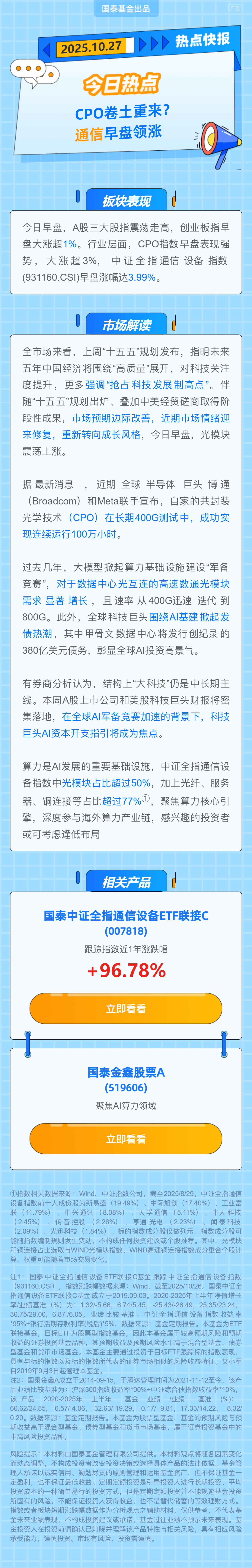 【热点快报】 CPO卷土重来? 通信早盘大涨超4%