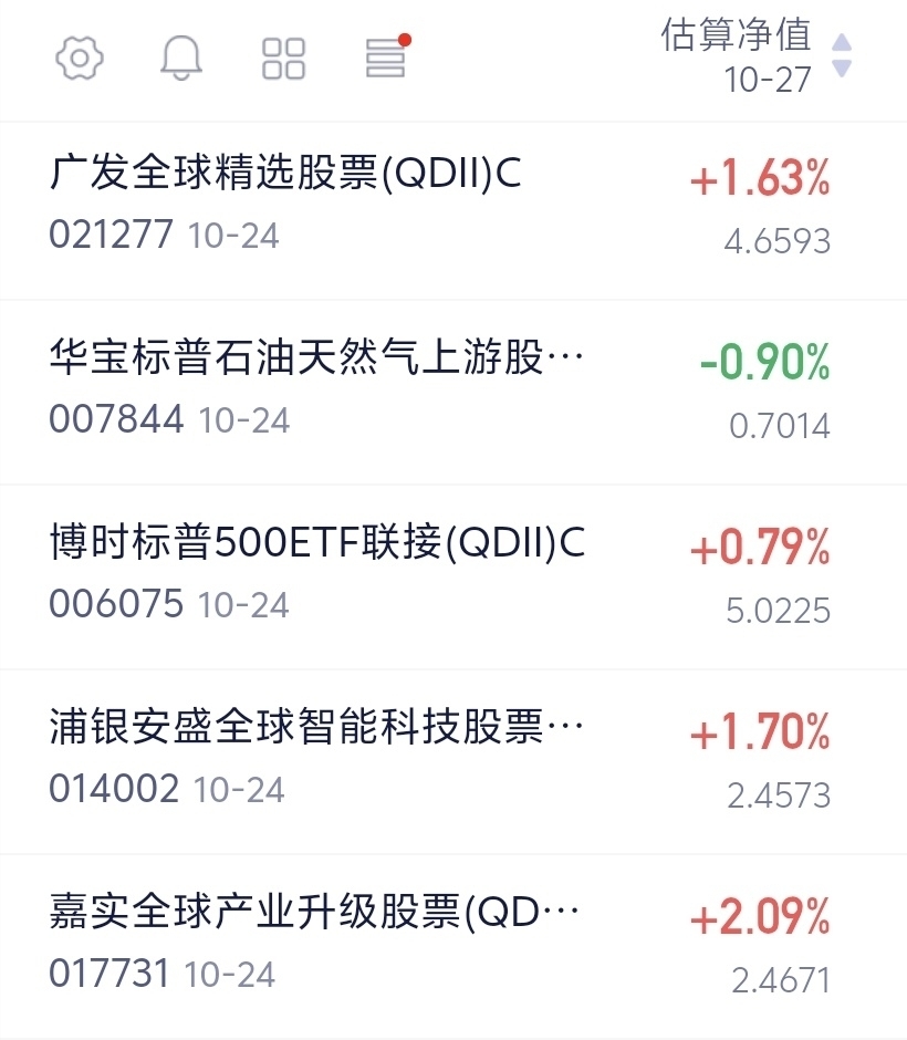 随着中美贸易达成共识,美股三大指数一起飘红,很多个股表现亮眼。我关注的$嘉实全球产业升级股票发起式(QDII)C$ 今天估值涨了2.07%,成绩不错。它的持仓不局限于A股,海外的半导体、新能源以及优质制造业龙头都能纳入,能帮着降低单一市场的风险。