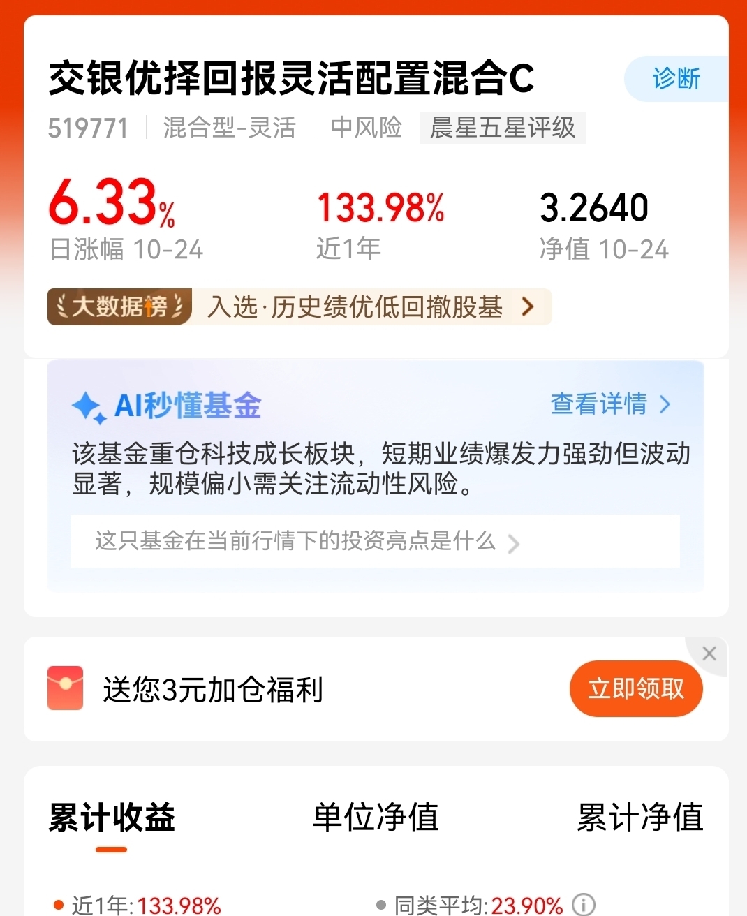我在选择了“能”优择回报虽然波动大,别焦虑,慢慢等它给你好结果,业绩优秀。