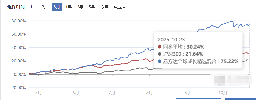 不知不觉又到了10月就要结束了,咱就说最近行情大家吃上肉了么?我看最近的市场行情表现还是科技赛道比较香~咱这一波也不准备错过,我看易方达-全球成长精选混合C这个不光配置单一赛道,基金经理可以配置A+H+美股,从而把握住多个市场的科技成长行情~最近走势这么稳还是继续跟着基金经理安心吃肉咯