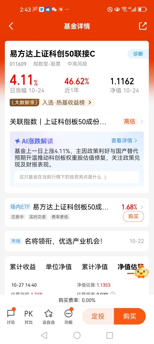 所以,在未来的投资路上,本人将做好多远化、跨市场的布局,并重点关注$易方达上证科创50联接C(011609)$、$易方达上证科创芯片指数发起式C(020671)$、$易方达恒生红利低波ETF联接C(021458)$。@易方达基金
