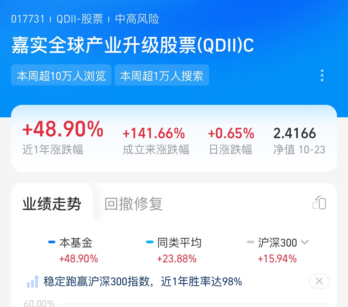对刚关注美股的朋友来说,近期市场表现挺稳,长期潜力值得期待。想入场又怕激进,嘉实全球产业升级股票(QDII)C很合适。它聚焦全球产业升级,持仓有英伟达、超威半导体等科技巨头,企业强技术力保障盈利稳增,基金成长逻辑清晰。近三月涨27.78%、近一年收益46.07%,业绩在同类中领先,收益超平均。随着资金顺周期流入相关领域,基金后续表现值得期待,新手可重点留意。