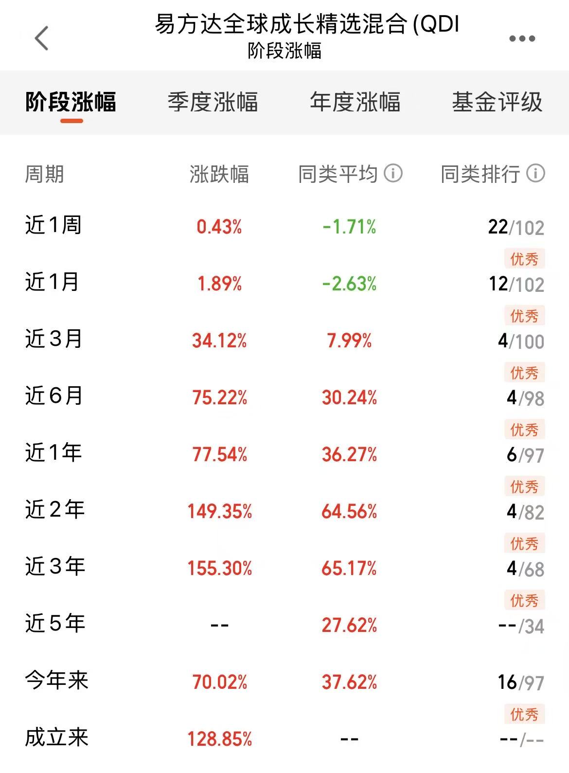 美股又继续反弹啦,真给力呀,A股和港股这边今天也是周一开门红,整体都是吃肉行情啦!不过近期的市场来看,我还是更喜欢全球市场,更有优势,易方达全球成长精选混合(QDII)人民币C是投资A股美股还有港股市场科技板块的,可以同时把握多地市场机遇,近三个月涨幅34.12%,近一年涨幅77.54%,盈利强,经理调仓能力也强,我也是持仓挺长时间了,继续持仓待涨啦!