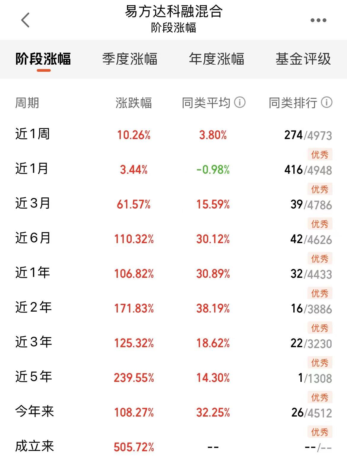 今天的黄金还在震荡,不过长期看涨的,也不用慌张!A股这边高开高走,盘面相当的给力,我继续看好科技赛道!易方达科融混合是兼顾科技、新能源还有军工方向的,持仓有光模块、半导体设备、光伏逆变器等,近一年收益率106.82%,业绩优秀,今天也是吃上大肉了,经理的管理调仓能力也是比较强的,我继续看好这个方向啦!