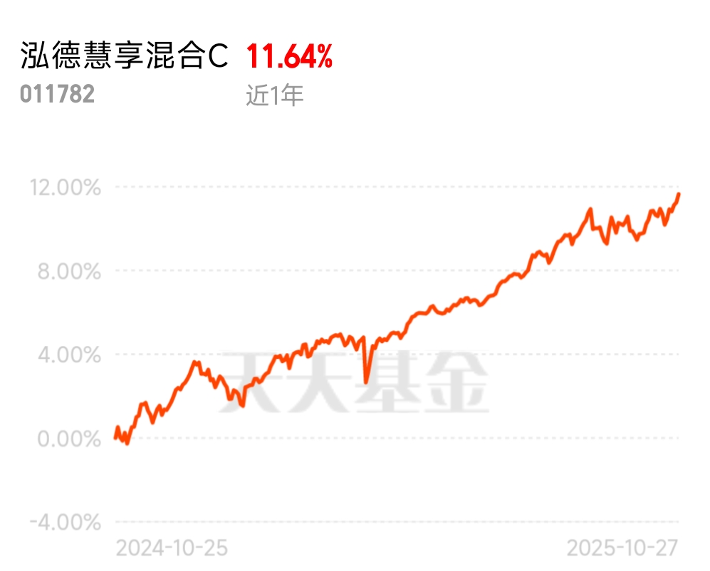 #美方“不再考虑”对中国加征100%的关税# 看着泓德慧享每天的表现都很踏实!今日收涨0.35%,在债市震荡时依旧能稳住阵脚,还靠权益端多赚收益,这种“稳中有进”的固收+,太适合不想承受大波动又想多赚点收益了$泓德慧享混合C$