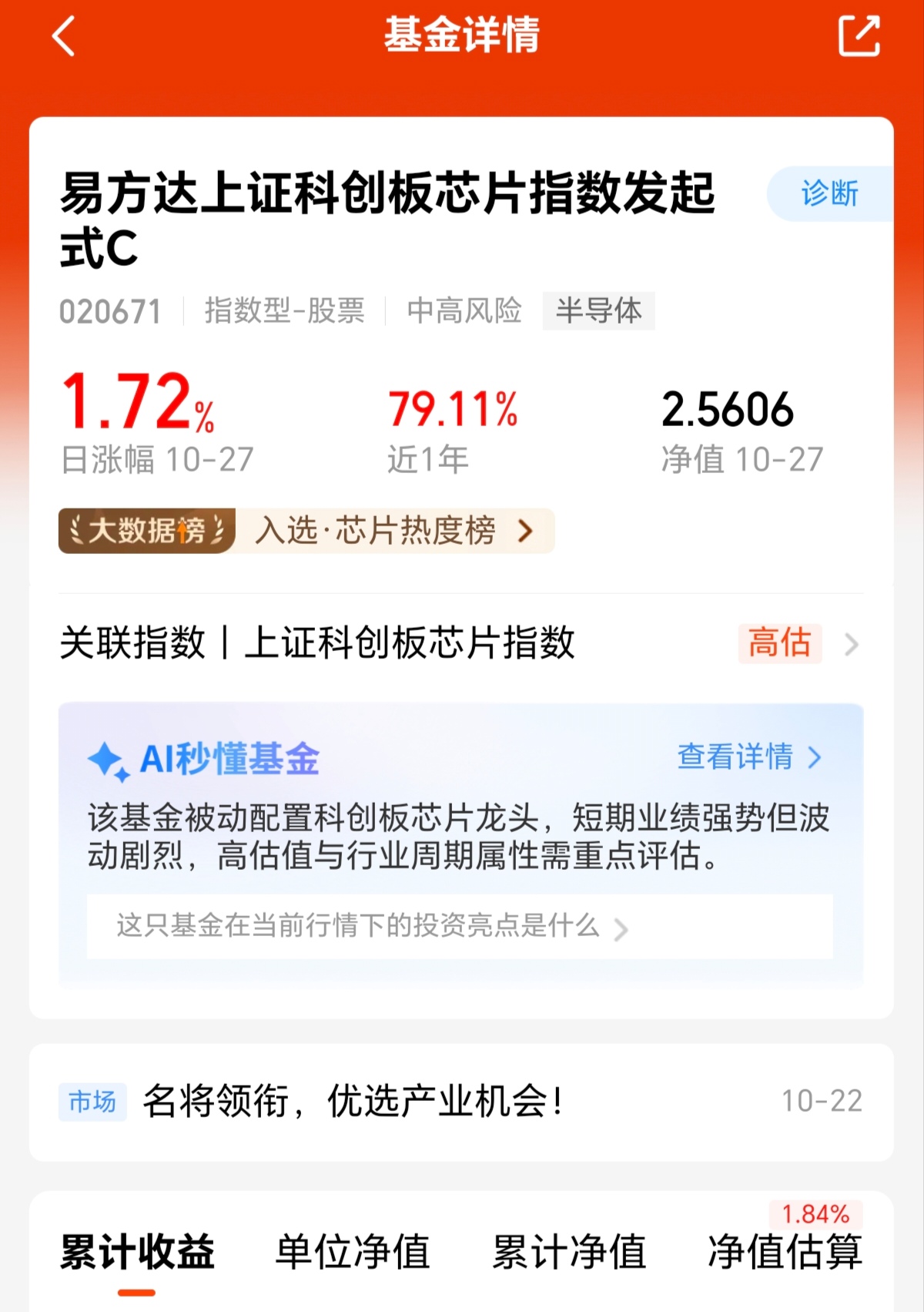 今日A股市场放量大涨,科创板芯片更是一路领涨,尤其是国产替代再次受到政策加码,同时芯片半导体产业作为“国家发展的战略支撑”,正获得从政策、资金到市场的大力支持,从趋势上来看,未来前景十分向好,其中:易方达上证科创板芯片指数发起C今晚上涨1.72%,我选择后期慢慢定投起来!