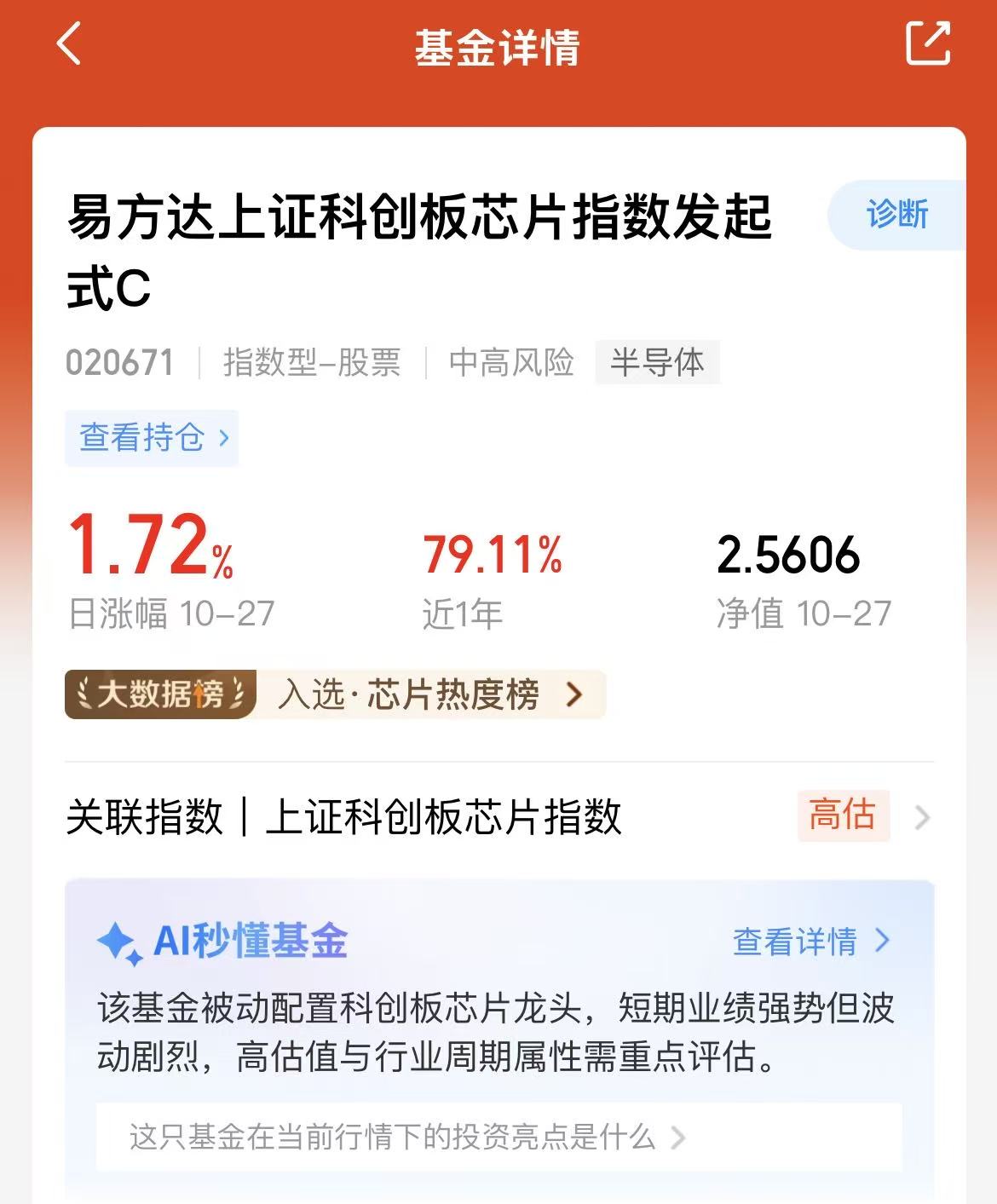今天A股高开高走,行情相当不错,芯片板块强势走高,多只个股涨幅超15%,易方达上证科创板芯片指数发起式C今天更新上涨1.72%,年化收益率79.11%,眼下国务院及工信部近期明确攻坚AI芯片、高端算力芯片等技术,芯片市场需求不断增加,我觉得芯片的前景是非常不错的!