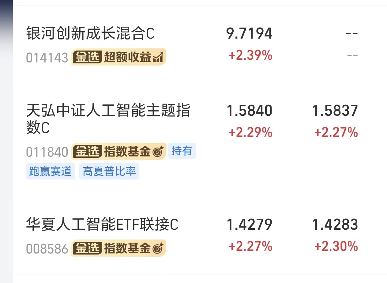 $华夏人工智能ETF联接C(OTCFUND|008586)$ 今天涨了2.27%