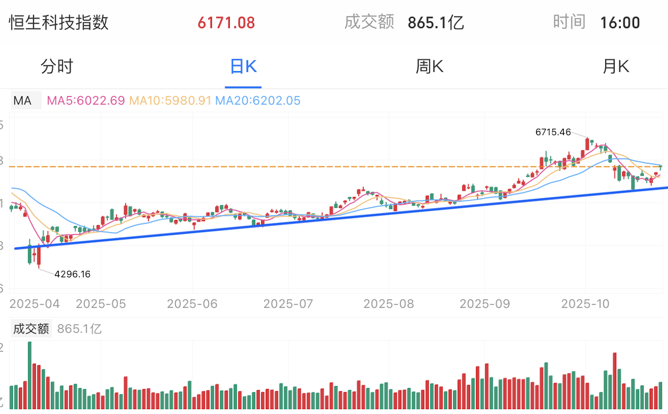 恒生指数和恒生科技近期一直震荡上行,最近波动加剧,这几日再次退守关键支撑位,目前止跌企稳,仍处于盘整期,不确定何时有行情。