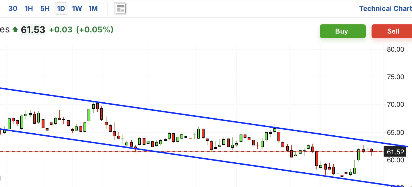 原油近期进入下行通道,最近回调至通道支撑位后反弹,目前逐渐靠近通道压力位,这两日徘徊不前。