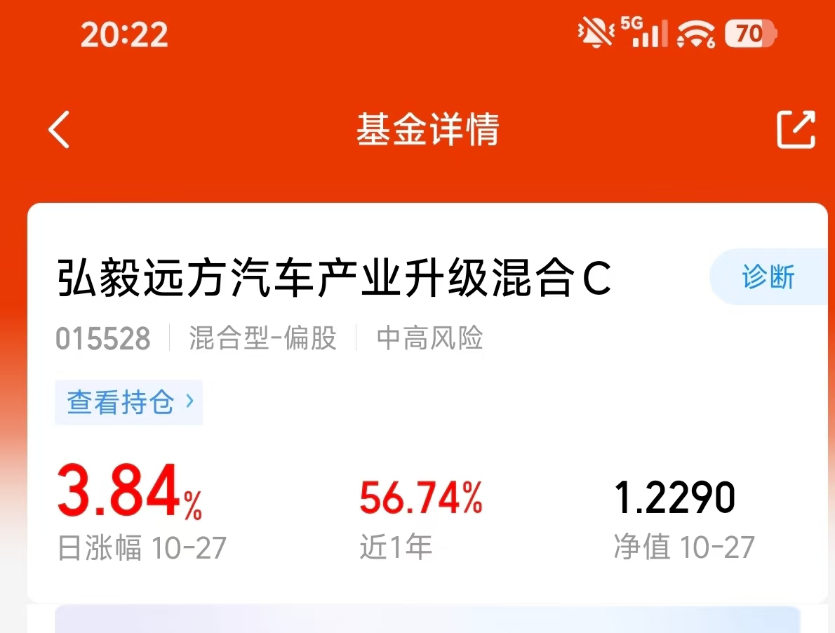 我关注的弘毅远方汽车混合C近一年收益率53.71%,上周五7%,刚更新又3.84