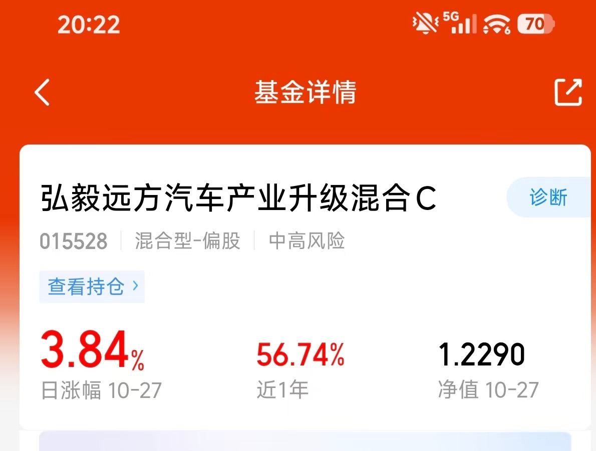 算力赛道最近大涨,弘毅远方汽车混合C上周五涨7%,刚更新又涨3.84%,业绩太亮眼了。近一年收益率53.71%,政策、技术、订单三驾马车一起发力,长期肯定还能创新高,今天我也冲了一波。