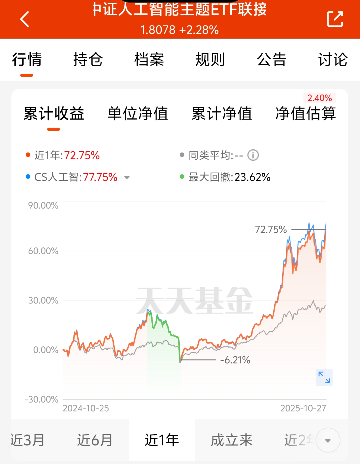沪指再度创新高,差一丢丢站上4000点,目前市场行情火热程度飙升,赚钱效应也是非常不错的!开年以来,大科技都表现非常优秀,其中人工智能也不错哦!今天易方达中证人工智能主题,涨幅2.28%,近一年涨幅72.75%,其业绩真是没得说,人工智能已慢慢融入人们日常生活,后市前景非常大,目前趋势向好,流星后市考虑慢慢定投起来,牛市行情。干就完了