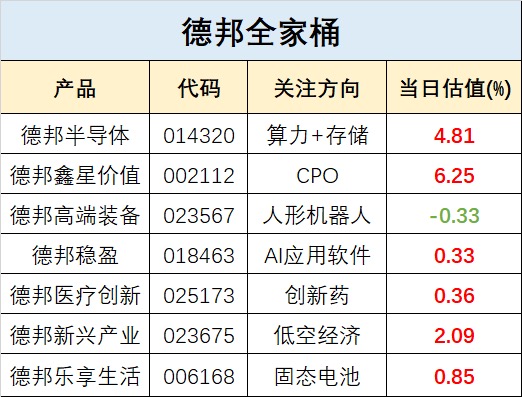 德邦全家桶今日估值来了。半导体和鑫星强力上涨$博时半导体主题混合C$$永赢半导体