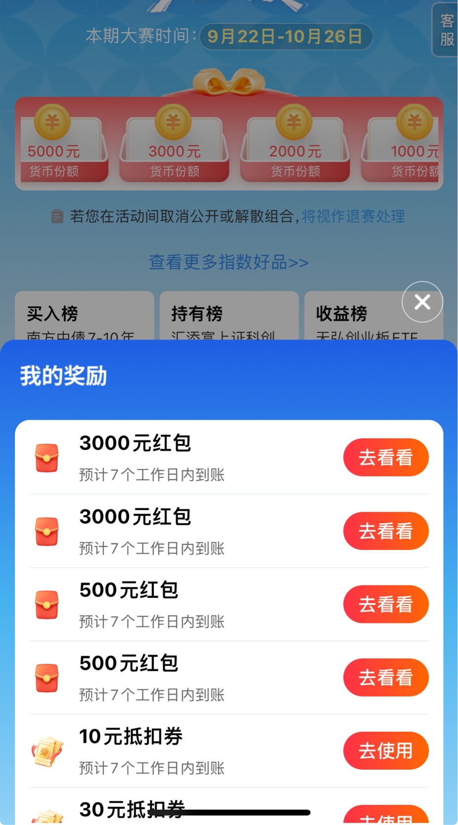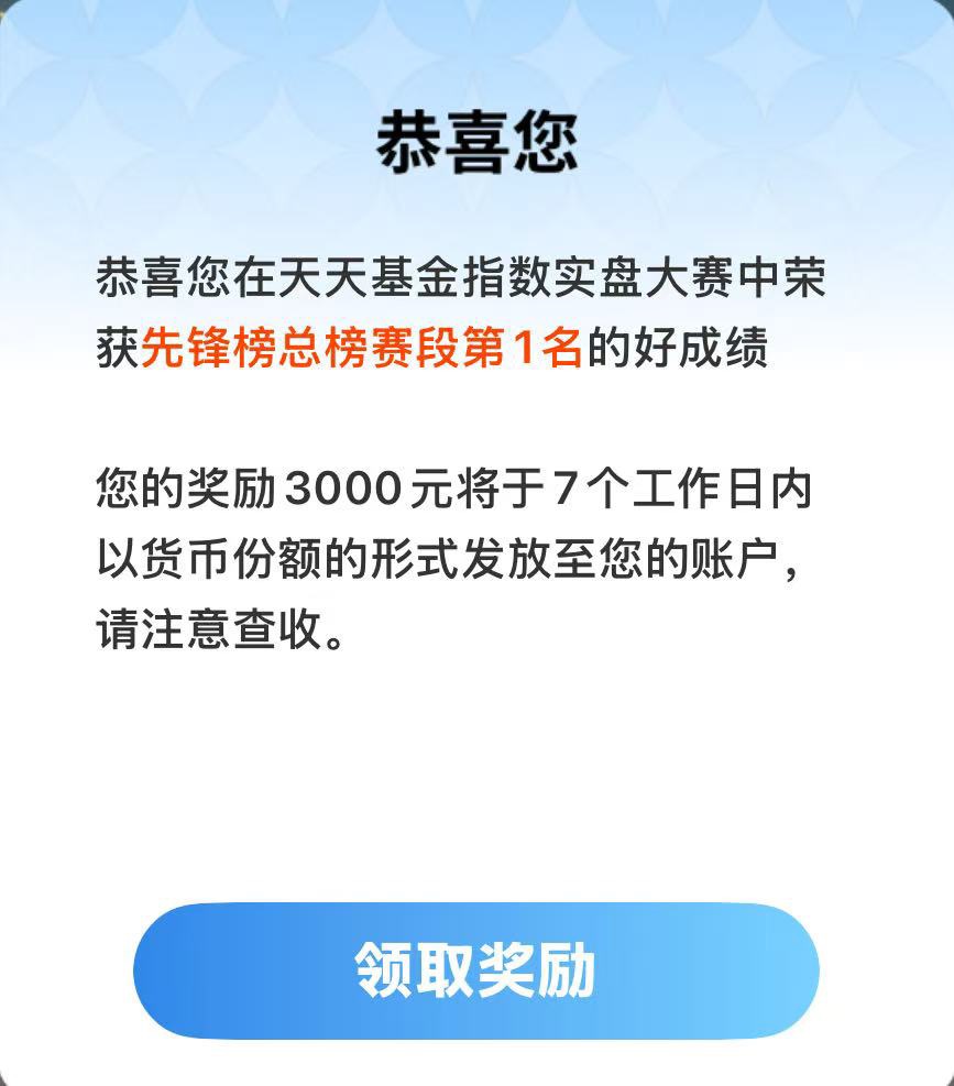 实盘大赛获得多个奖项,感谢天天基金,感恩!
