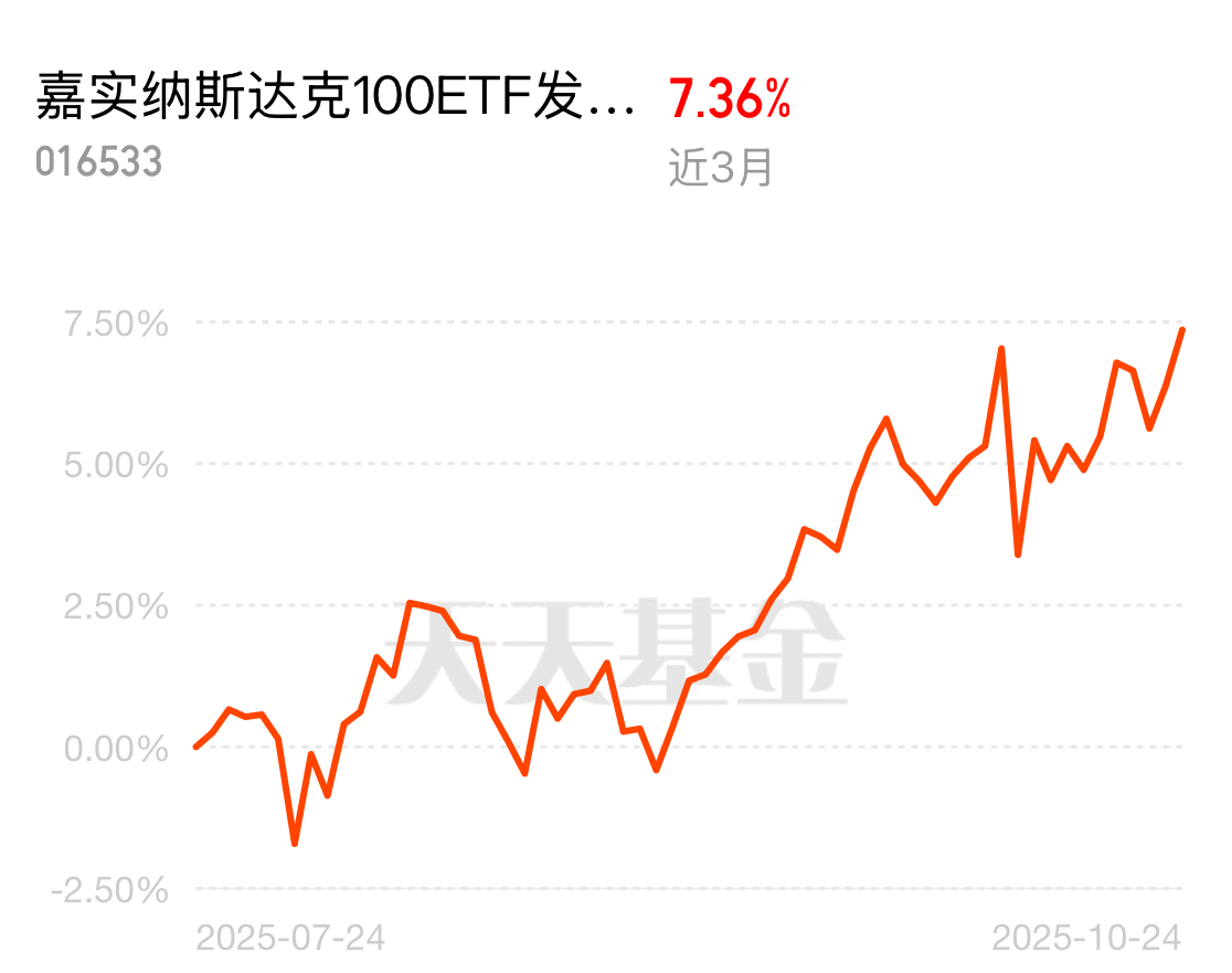 懒人跟风型作为一个懒得研究的投资懒人,最近的操作就是盯紧美股。主要是利好太密集了:中美谈判有进展、美联储要降息、还有财报季加持,这波行情真的不能错过。选基金我就认两点:口碑和规模。嘉实纳斯达克 100(016533)现在是全市场额度最高的,说明资金都往这儿涌,跟着大部队走准没错。不用费脑子选个股,还能分享全球顶尖科技股的红利,简直是为我这种懒人量身定做的。$嘉实纳斯达克100ETF发起联接(QDII)C人民币$