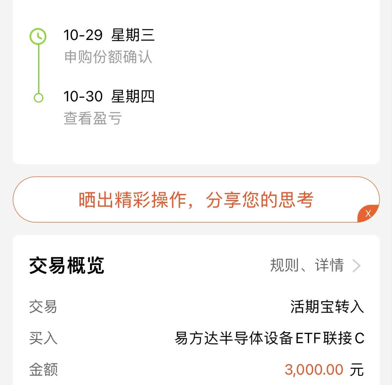 今天股市低卡拉升,半导体设备近期强劲反弹,主要因储存芯片行情催化。供需格局改善及国产替代加速,提振市场信心。未来仍有较大机遇,回调恰是布局良机,逢低跟进把握长期趋势。风险即机遇,短期波动不改行业景气上行态势。易方达半导体设备ETF联接C昨日上涨3.67%,真的很不错啊,今天加点仓!