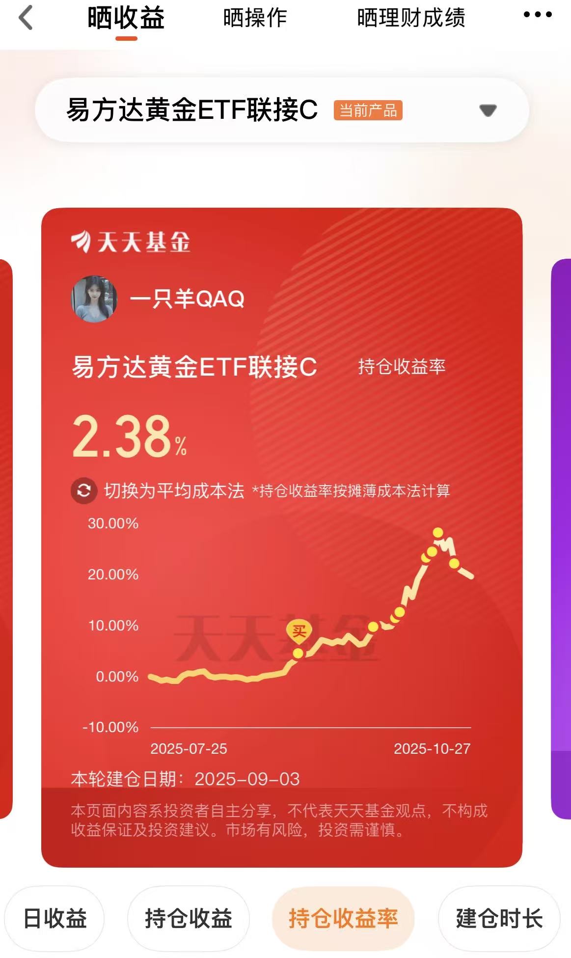 哎呀黄金绿麻了啊!前期的盈利慢慢往出吐,但是这波黄金大跌主要是短期风险缓和闹的,中美关系缓和、美元反弹,但黄金的硬核逻辑没变,抗通胀、避险、央行狂买。$易方达黄金ETF联接C(OTCFUND|002963)$我现在还是红的,跌多了就准备加仓,毕竟全球乱局下,黄金还是最硬的压舱石。