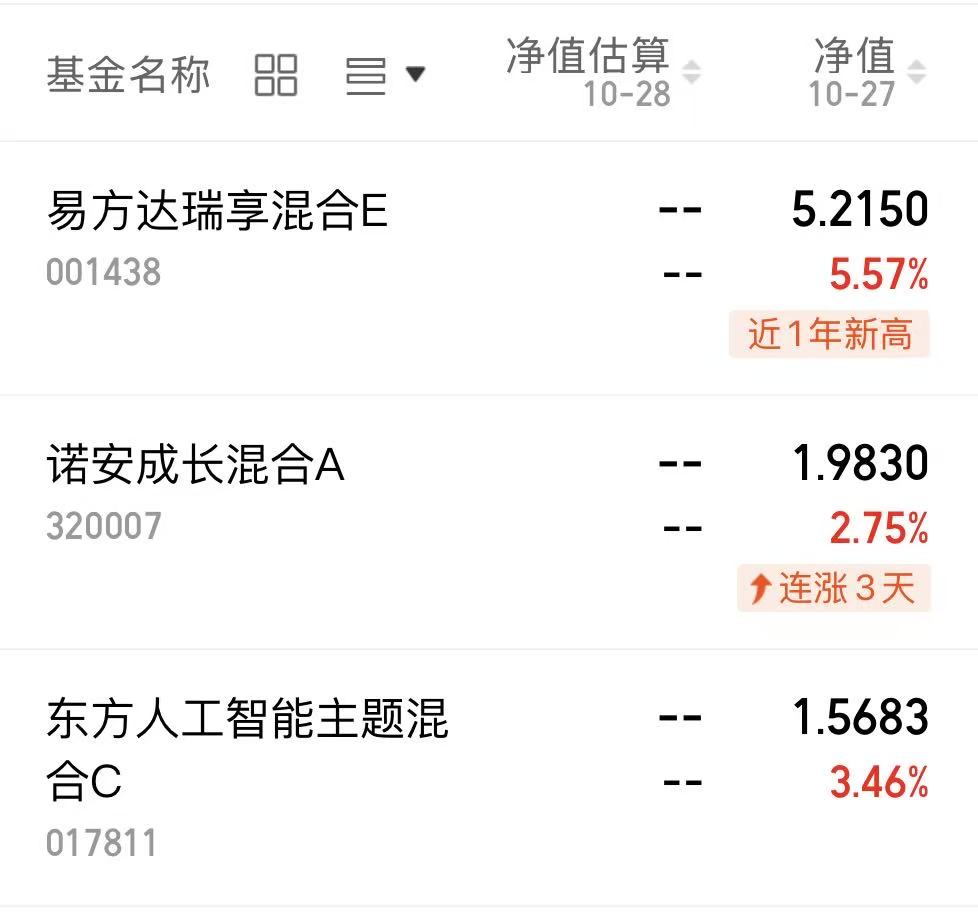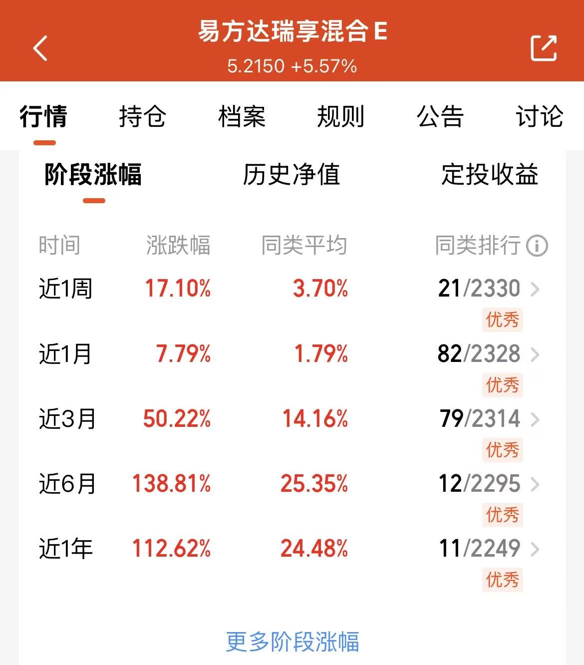 A股延续反弹上涨啦,科技板块继续吃肉,指数冲上了4000点了,易方达瑞享混合E昨天上涨5.57%,近三个月涨幅50.22%,近六个月涨幅138.81%,业绩优秀,重仓涵盖新易盛、中际旭创等光模块龙头,聚焦AI算力光通信等赛道,经理的个人能力也强,我继续看好未来前景了!