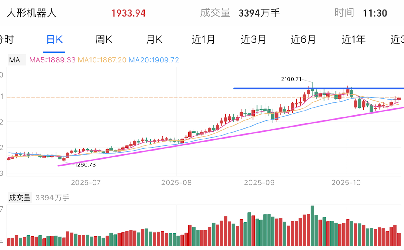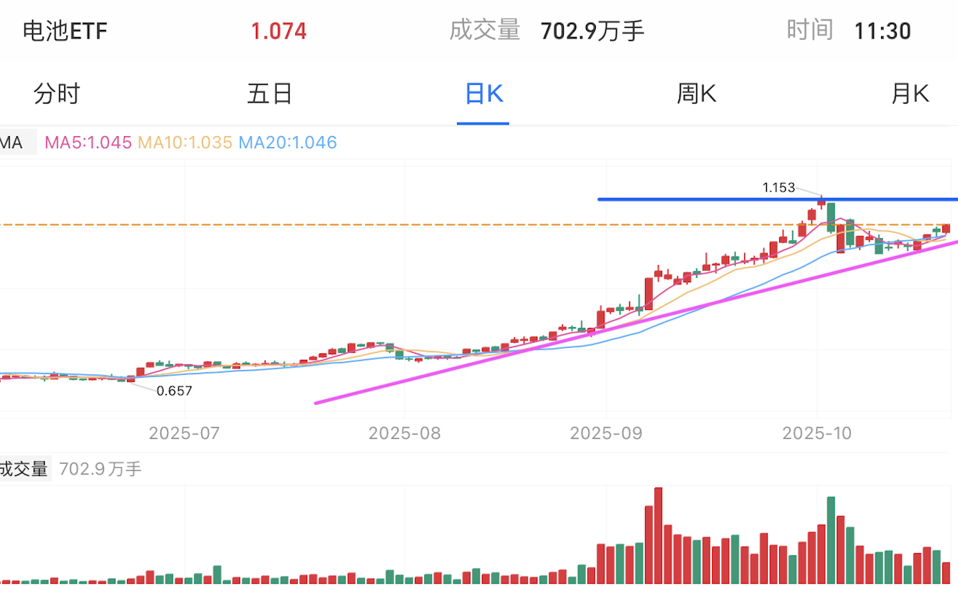 人形机器人、电池近期一直震荡上行,最近在大幅上涨后回落,这几日守住关键上涨趋势线并止跌回升,逐渐靠近前高压力位,如果成功突破,那么迎来新行情。