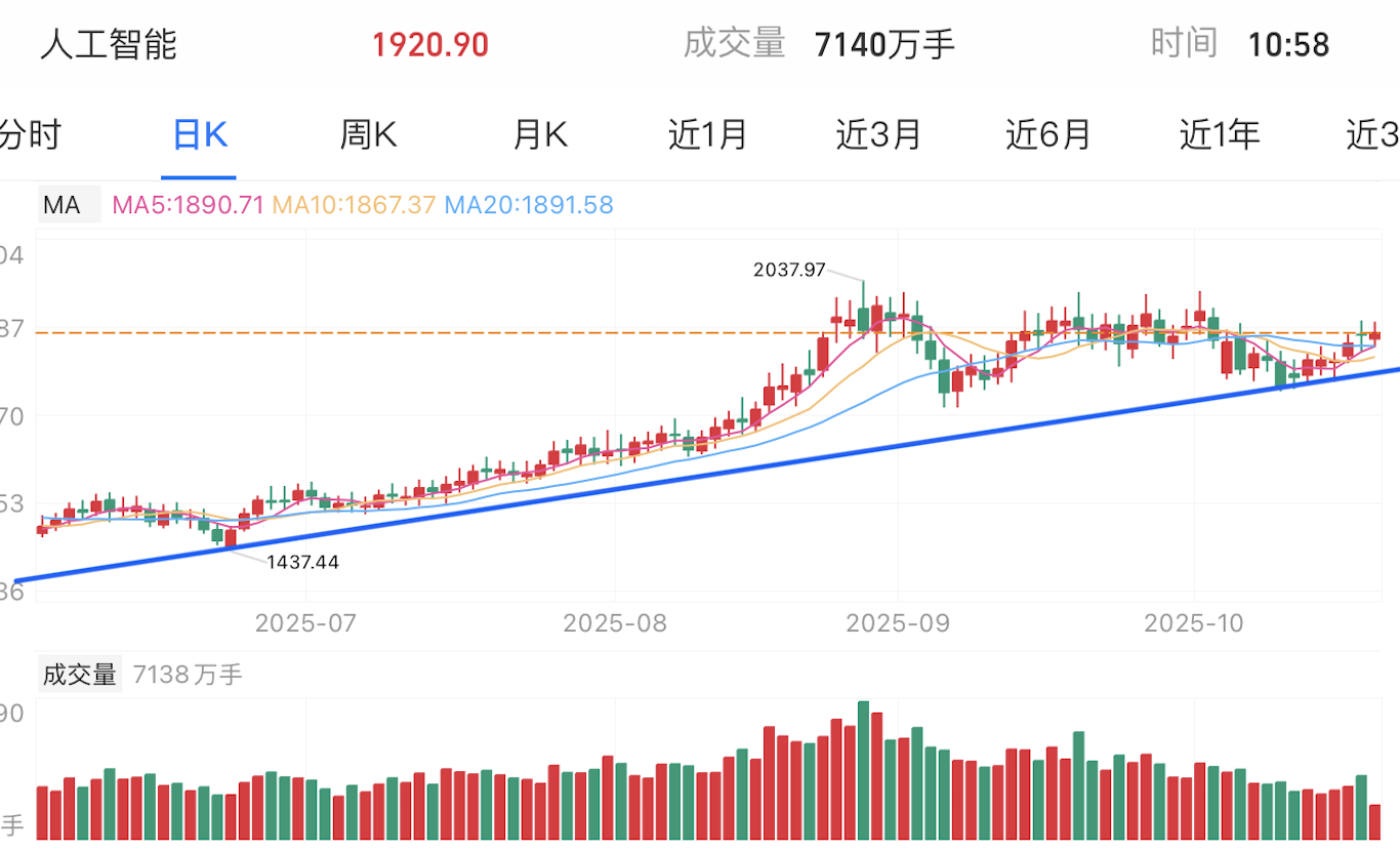 今日加仓1000。近期市场再度回升,科技龙头全面爆发!乐观情绪来自贸易谈判进展及美联储降息预期,为科技板块提供双重支撑。AI主题依旧是市场最强主线,资金持续涌入。创业板AI指近期放量上攻,短线动能充足。该基紧密跟踪创业板AI主线,重仓高成长性龙头,聚焦AI和芯片核心领域,兼具高弹性与前瞻布局。随着AI技术落地、政策持续利好,进入产业与资金共振的新阶段。持续加仓布局。(非投资建议)