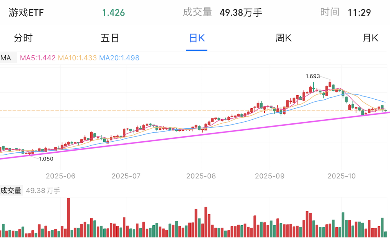 游戏和稀土近期有一波大行情,最近力竭回撤,跌至中长期上涨趋势线。这两日守住关键支撑位,然而震荡不前,目前仍处盘整期,游戏这两日放量下跌,甚至有回调风险。
