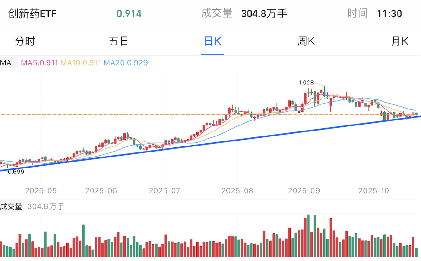 创新药近期大幅上涨,后力竭盘整,跌至中长期上涨趋势线,这几日窄幅震荡,止跌横盘。港股创新药则跌破支撑,短期趋势下行。