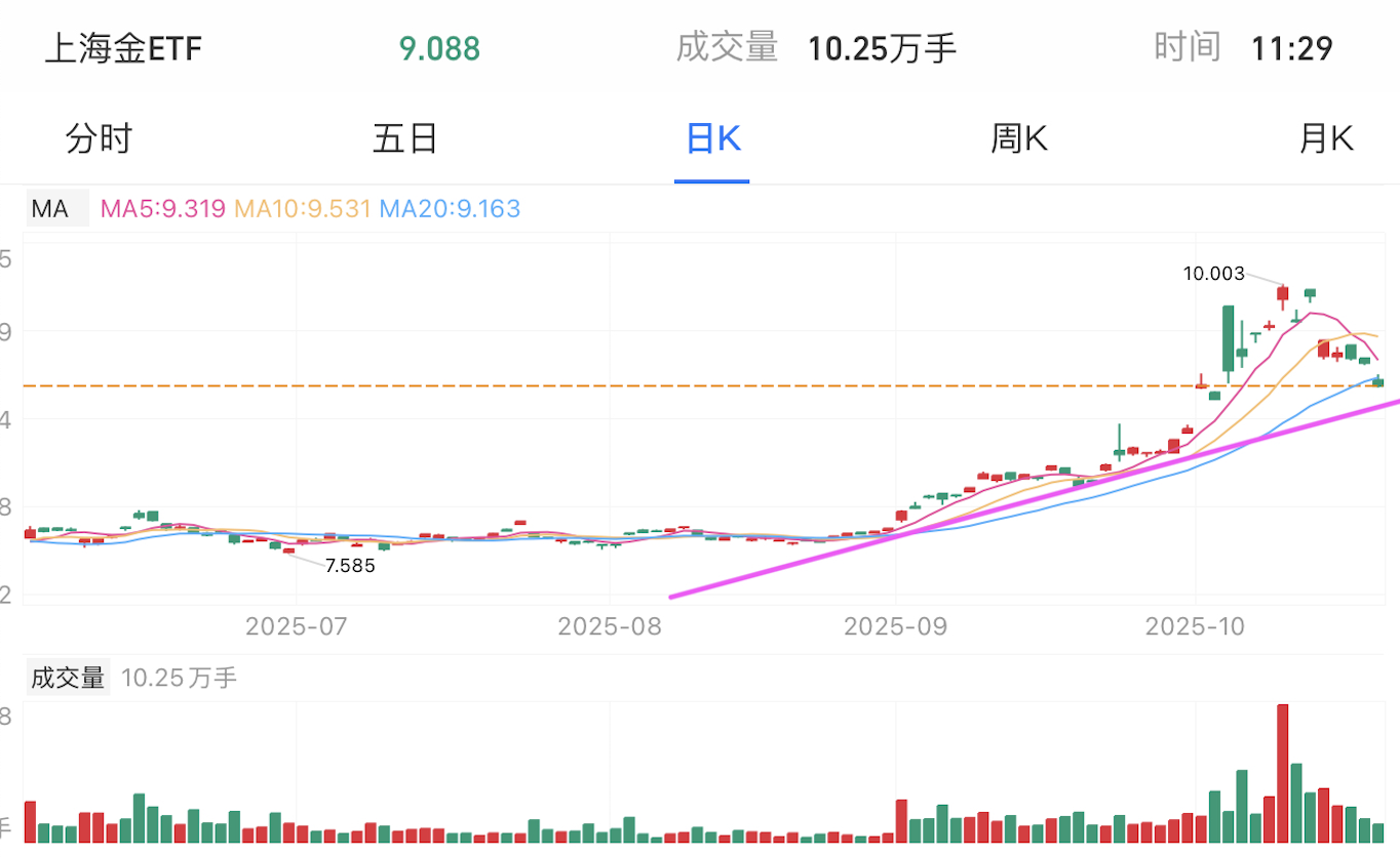 今日加仓1000。近期国际金价在突破 4200美元后短线急跌,但回调幅度仍处于历史正常区间,趋势性多头格局依旧稳固。当前全球经济增长仍存在不确定性,科技股估值高企,市场短线波动加剧,避险情绪随时可能升温,均为黄金价格提供中长期支撑。同时全球机构正持续加码黄金资产配置。此基紧密跟踪上海金基准价格,费率低、跟踪误差小,是震荡市中配置避险资产的优质工具。短期回调是逢低布局的良机。(非投资建议)