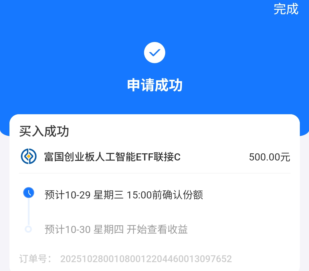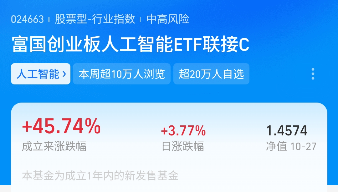 今天我也是继续布局500$富国创业板人工智能ETF发起式联接C$ ,跟踪人工智能主题,持仓涵盖CPO,半导体,软件开发等热门领域,弹性十足。