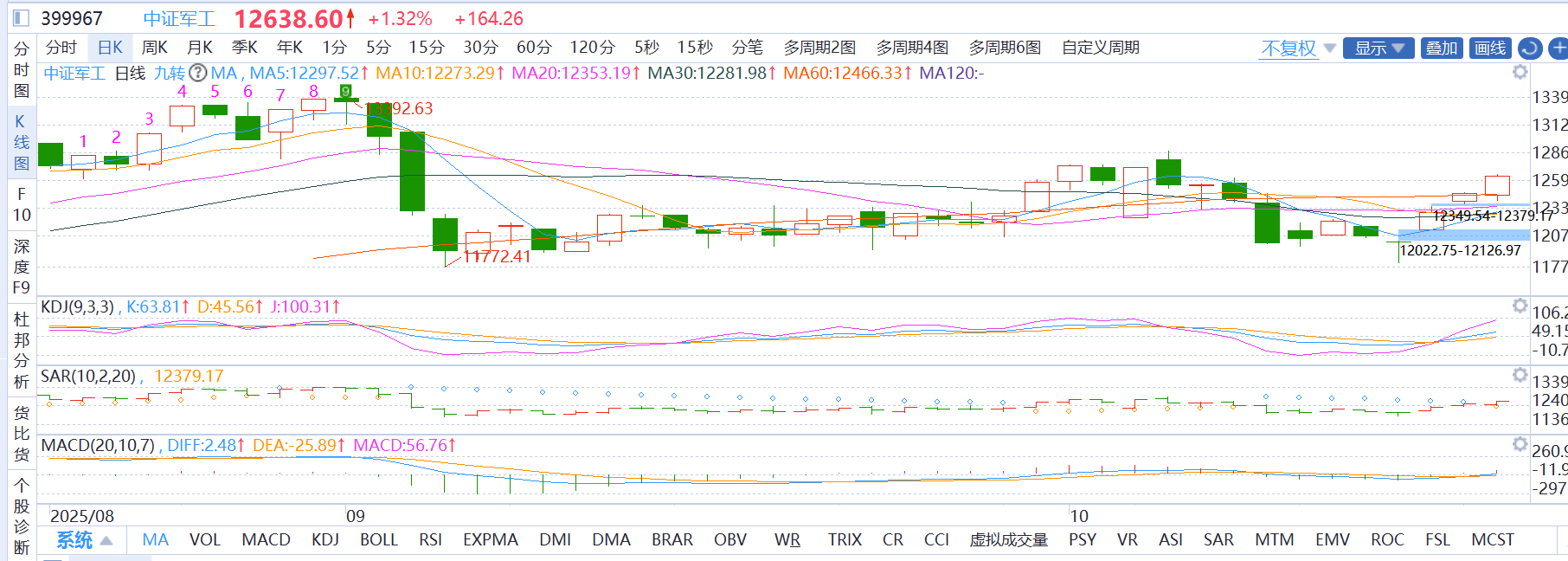 军工板块:上周提示右侧买点后,当前市场情绪向好,趋势向上,轻仓可少量加仓布局,麦爸继续观望,选择不动。