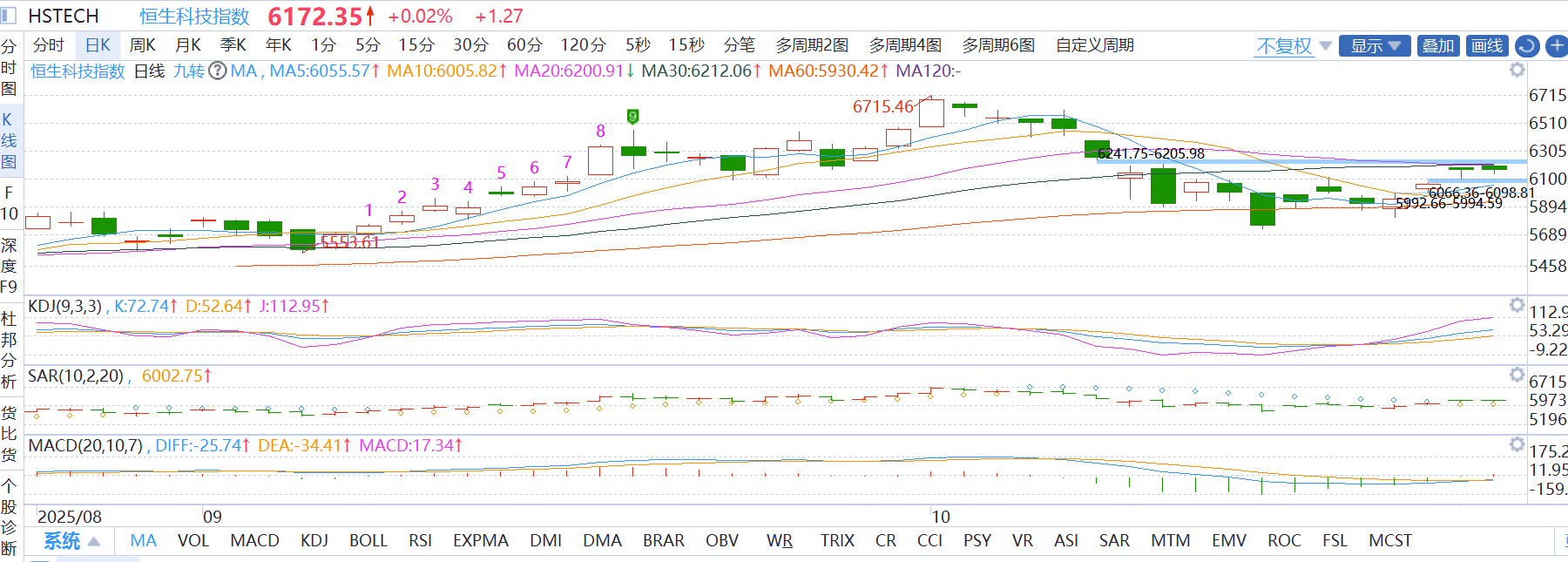 恒生科技:午盘仅微涨0.02%,虽有A股情绪带动及政策长期支撑,但短期波动小、缺乏爆发力,再看看板块量能再说。,麦爸选择不动。