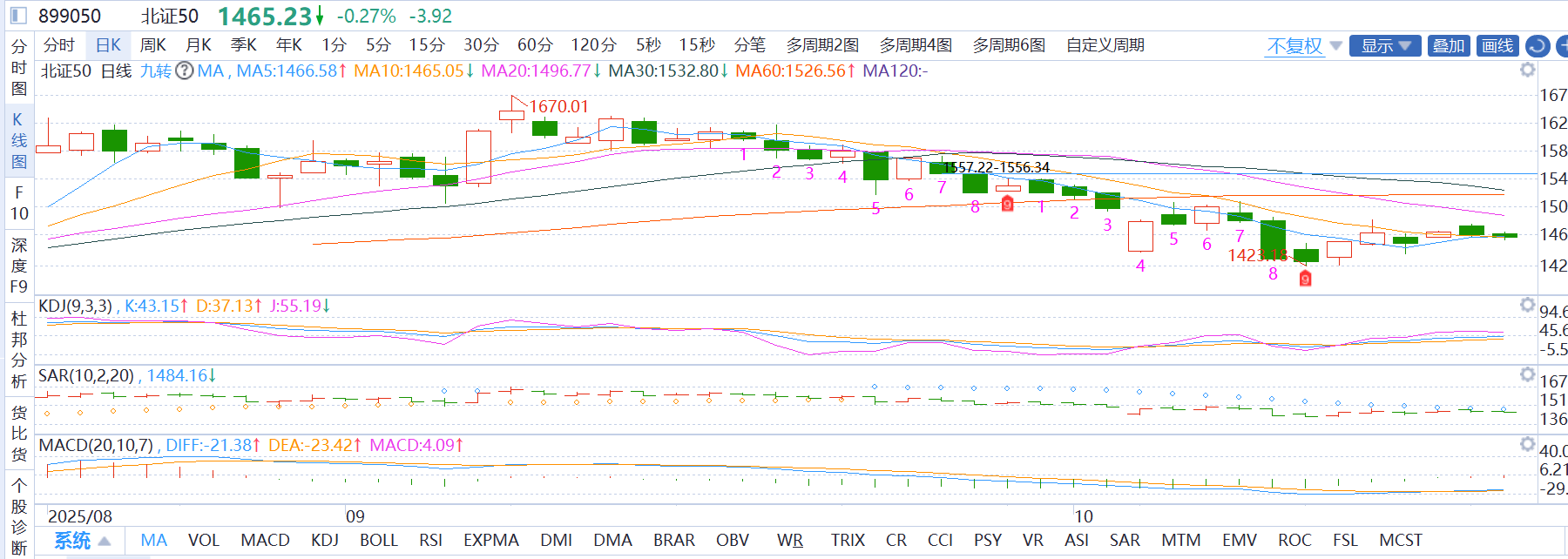 北证50:指数继续小幅下跌,市场表现相对偏弱。麦爸选择继续“观望”,暂不操作。