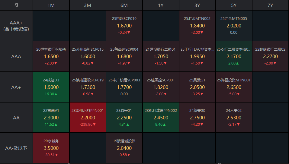 信用债:晴,其中城投债晴,产业债晴,二级资本债晴,银行永续债晴,商业银行债晴