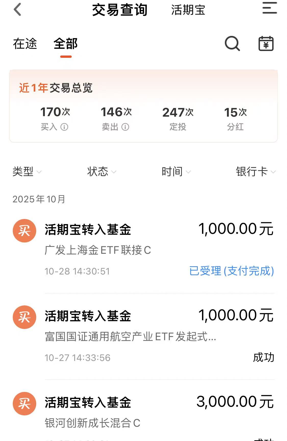 买入1000元$广发上海金ETF联接C(OTCFUND|008987)$,今天黄金股还在回调,现货黄金跌破4000美元/盎司。黄金跌的原因主要还是涨太多需要调整一下,今年涨幅都已超60%!调整熙凤觉得也不用过于担心,现在也只是涨太多的回调,修整一下顶背离,所有熙凤趁着调整继续加点仓。