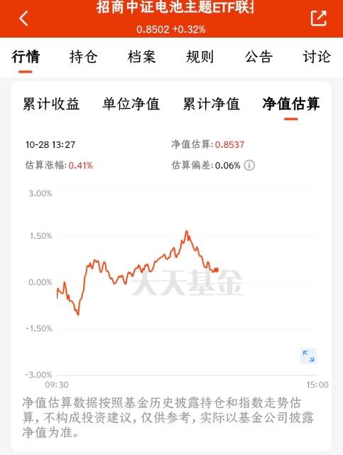 今日股市低开高走,沪指突破4000点。电池板块表现强劲,从低开迅速拉升翻红,行情整体动能充足。正值三季度财报窗口期,板块内多家公司业绩表现亮眼。宁德时代前三季度营收同比增长9.28%,亿纬锂能、国轩高科、厦钨新能等企业均实现两位数增幅,显示出行业持续向好的基本面。基于对电池板块长期景气的信心,我决定继续加仓$招商中证电池主题ETF联接C(OTCFUND|016020)$基金。