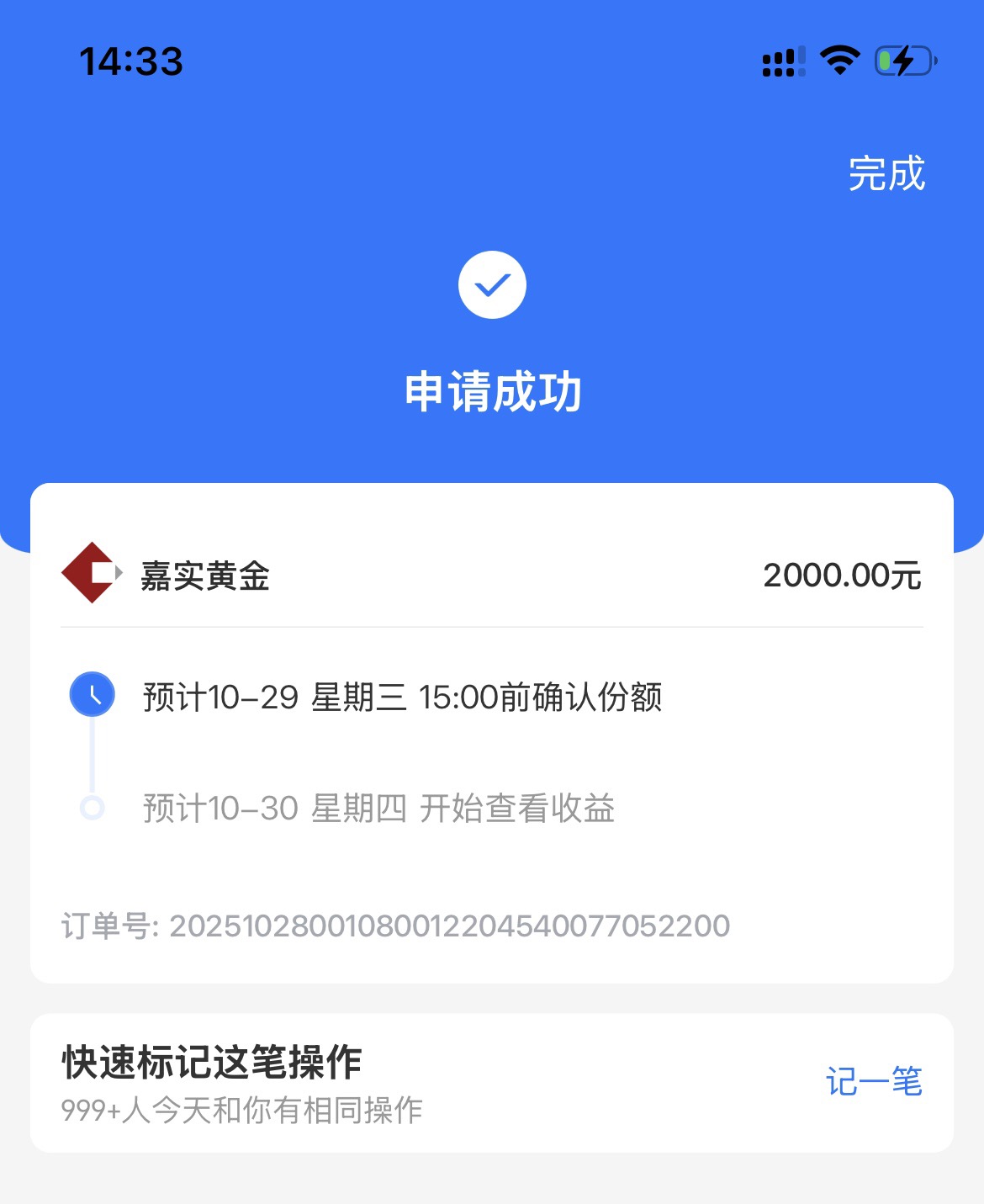黄金目前也还是处于高位震荡阶段,今天还是+了一些$嘉实上海金ETF发起联接C$ ,作为资产组合的防御性工具,不加到时候看着别人收割黄金我又该眼红了。