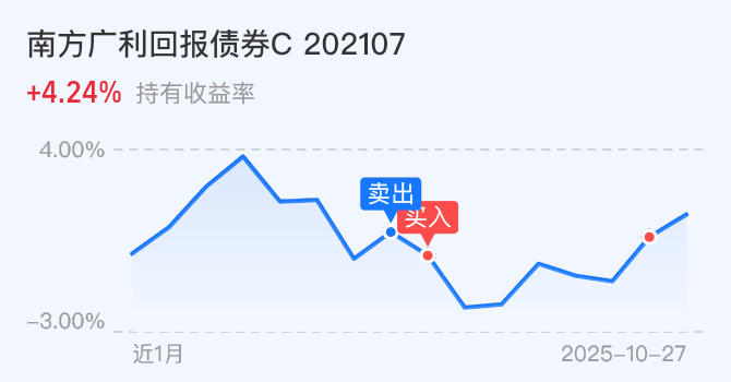 个人今日上车广发恒祥债券C--5000元,这一支是我持仓中的老朋友了,过去一段时间大A往4000点试探的过程中反复磨合,行情切换轮动加快,但是低波动的固收+我却一直拿的很稳,广发恒详债券C昨天单日涨幅34个蛋,在同类中表现出圈,且长期的复利能力来看,近一个月历史涨幅1.02%、近3个月历史涨幅2.29%、近6个月历史涨幅7.4%大幅跑赢同类标的,持仓结构和当下的市场行情高度契合,债仓98.63%中,利率债59.21%+信用债37.42%,大量纯债稳健托底,少量2%可转债捕捉股债平衡机会。股票仓中15.3%以科技、新能源、周期、基建地产、医药、消费为主,这些领域都是十五五中高频出现的优质赛道,个人今日继续上车5000元,30天持有0费率,短期管住手,理性持仓不追涨杀跌,减少对单一行情的依赖,均衡长期持有为主。