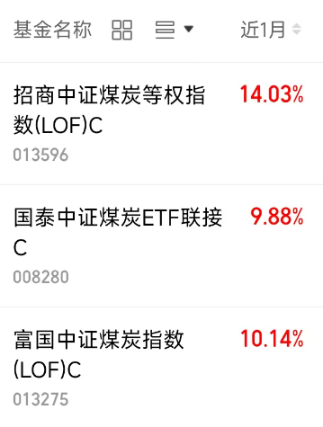 $招商中证煤炭等权指数(LOF)C(OTCFUND|013596)$+1.03%,近一个月+14.03%