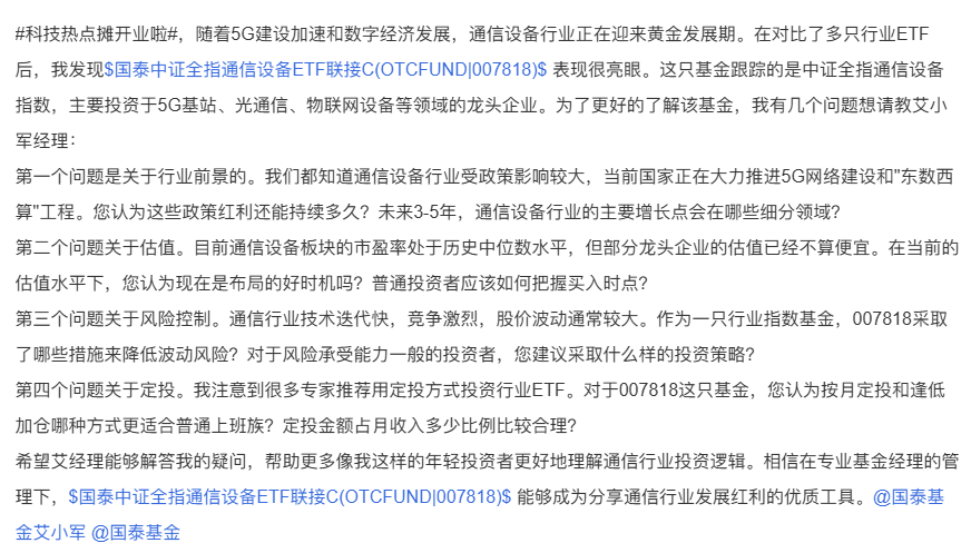 相关产品:$国泰中证全指通信设备ETF联接C(OTCFUND|007818)$ $国泰半导体设备ETF联接C(OTCFUND|019633)$ $国泰上证科创板芯片ETF发起联接C(OTCFUND|024854)$