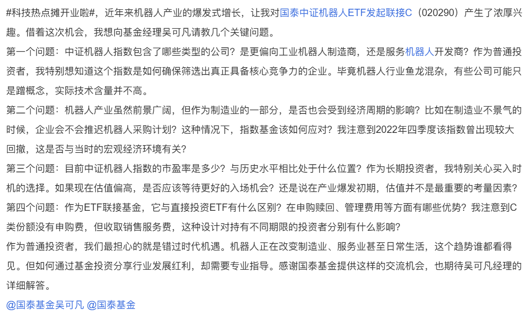 $国泰中证机器人ETF发起联接C(OTCFUND|020290)$ $国泰中证机器人ETF发起联接A(OTCFUND|020289)$