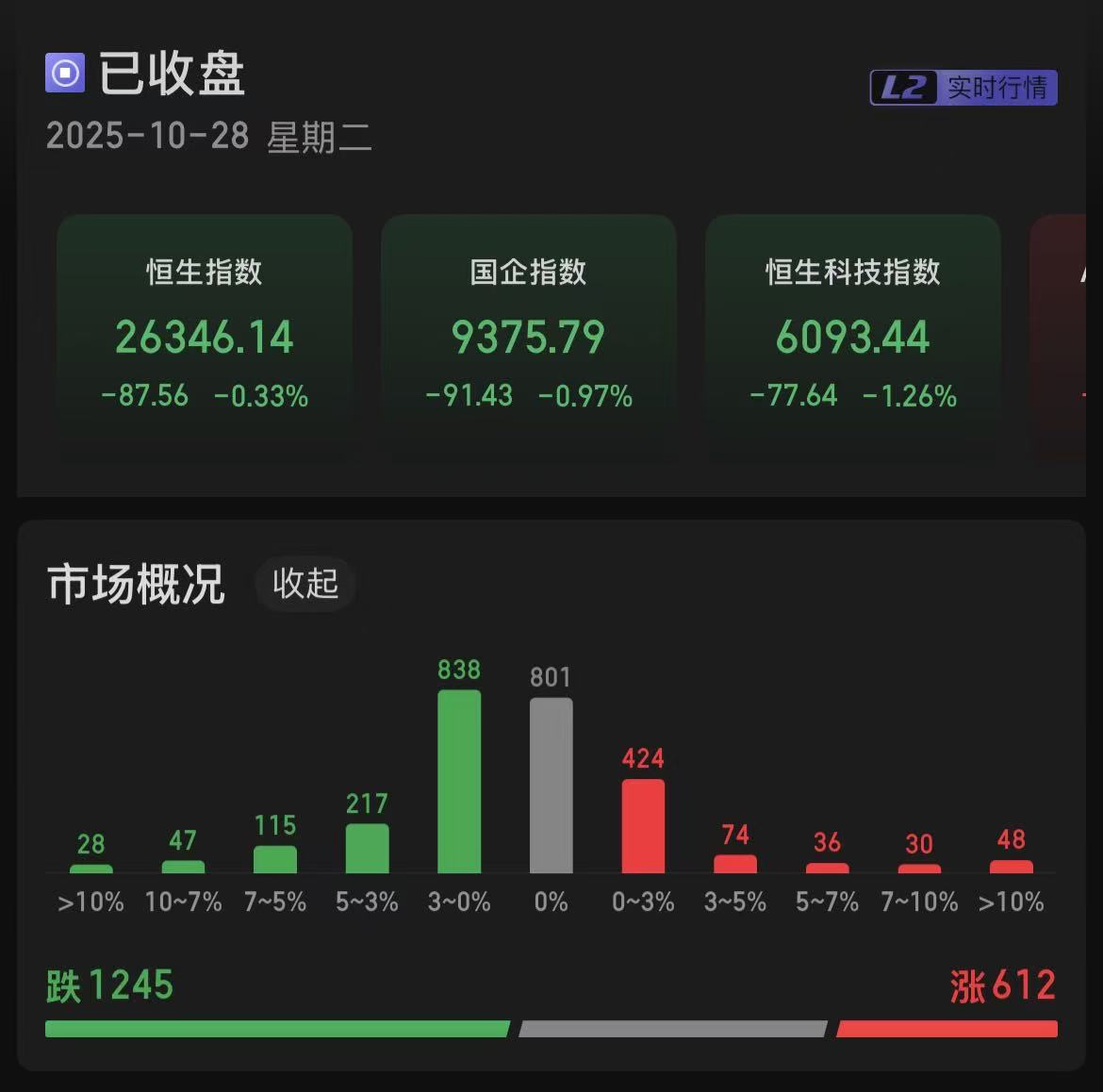 10月28日,A股市场最显著特征是沪指4000点得而复失,这反映了在当前点位多空分歧加剧,另一方面市场韧性增强,板块轮动有序。福建板块、军工、新能源等板块的活跃表明市场做多主线依然清晰,而非普跌格局。港股市场整体表现疲弱,有优质新股上市带动局部亮点,但整体市场情绪仍受A股拖累。。
