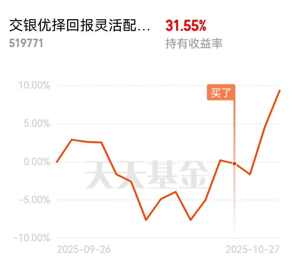我在选择了“加仓”交银优择回报C,选的标的不错,也不用天天看,持有收益挺好的$交