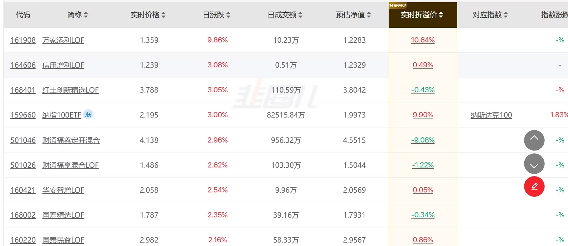 1⃣ 万家添利LOF(161908) (+9.86%)