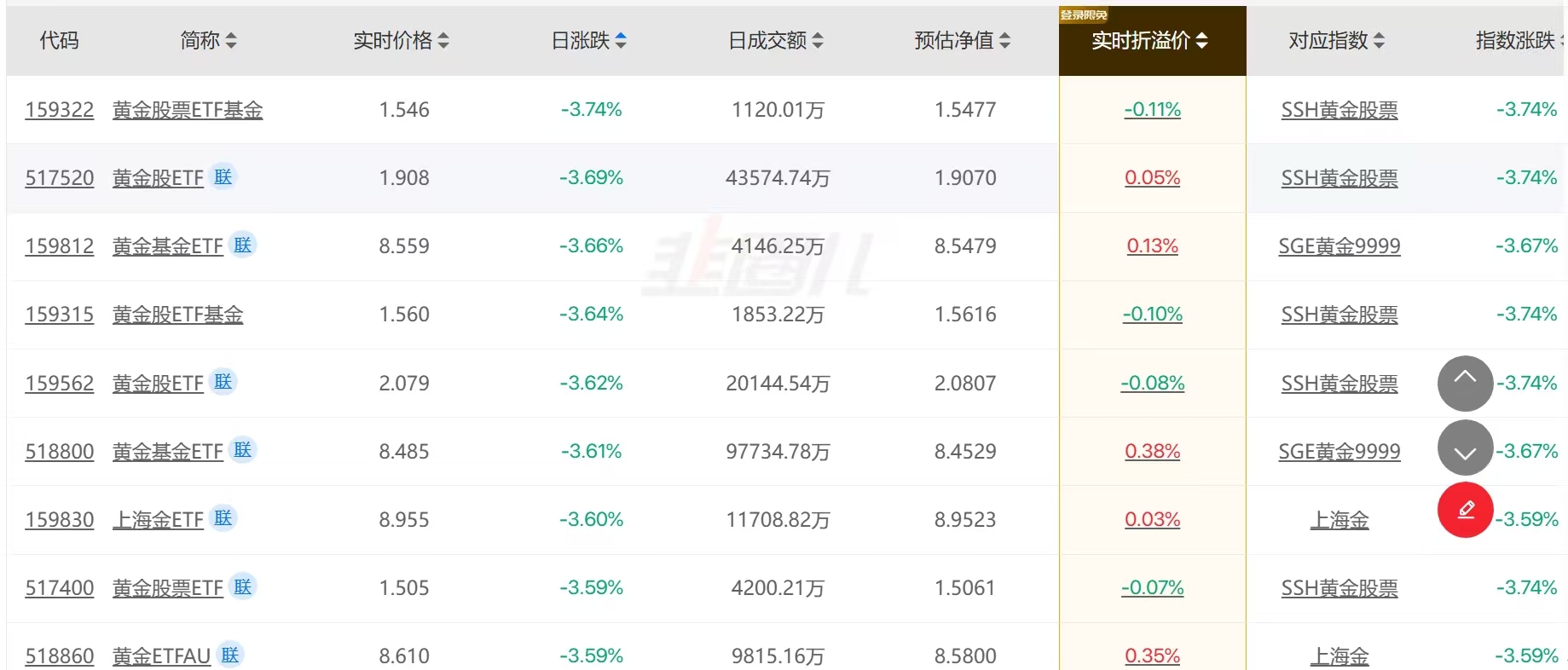 1⃣ 黄金股票ETF(159322) (-3.74%)
