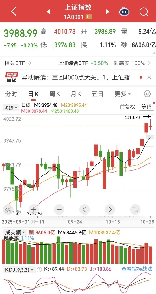 #A股盘中突破4000点!下个目标位在哪?# 今天A股冲上4000点回落,缩量近2000亿,明天如果能站稳4000点,那后市可期,如果明天稳不住,后续可能延续波动的可能性比较大,因为这轮调整周期说实话不长,按往常的走势,在启动下一轮行情,大概率需要震荡调整几个月积蓄力量,才能更好的向上突破
