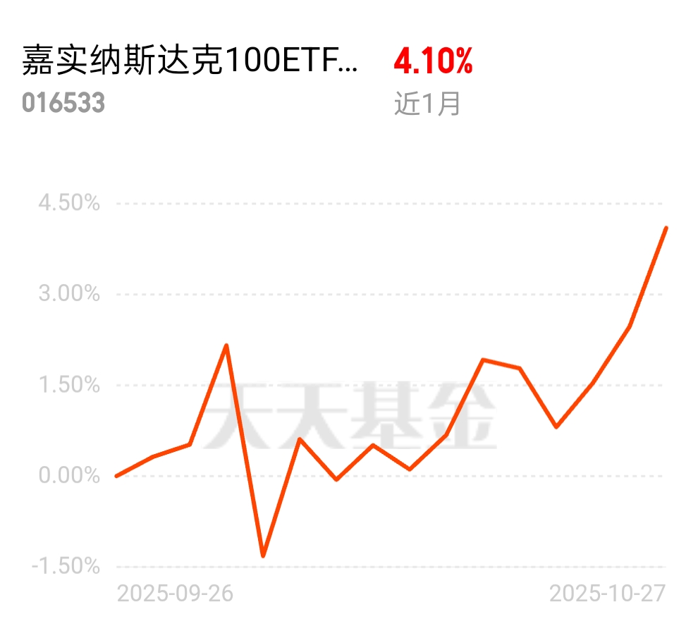 #慢慢投基路 你悟出了哪些投资哲学?# 今天美股继续高歌猛进的表现,在中美贸易谈判取得了良好的进展以后,市场情绪得到了缓解。$嘉实纳斯达克100ETF联接(QDII)C$ 同样也是冲着新高去了,这周六大科技公司将会陆续发布业绩报,相信AI带动的行情依然是市场的主核心热点,围绕确定性做机会,纳斯达克指数依然是有机会继续冲上新高的。当然,相比A股会出现一些波动大,对于美股来说,更是咱们躺平、稳定、省心定投不错的方向。相比同类,这一家的费率也会更低一些,长线优势也更好