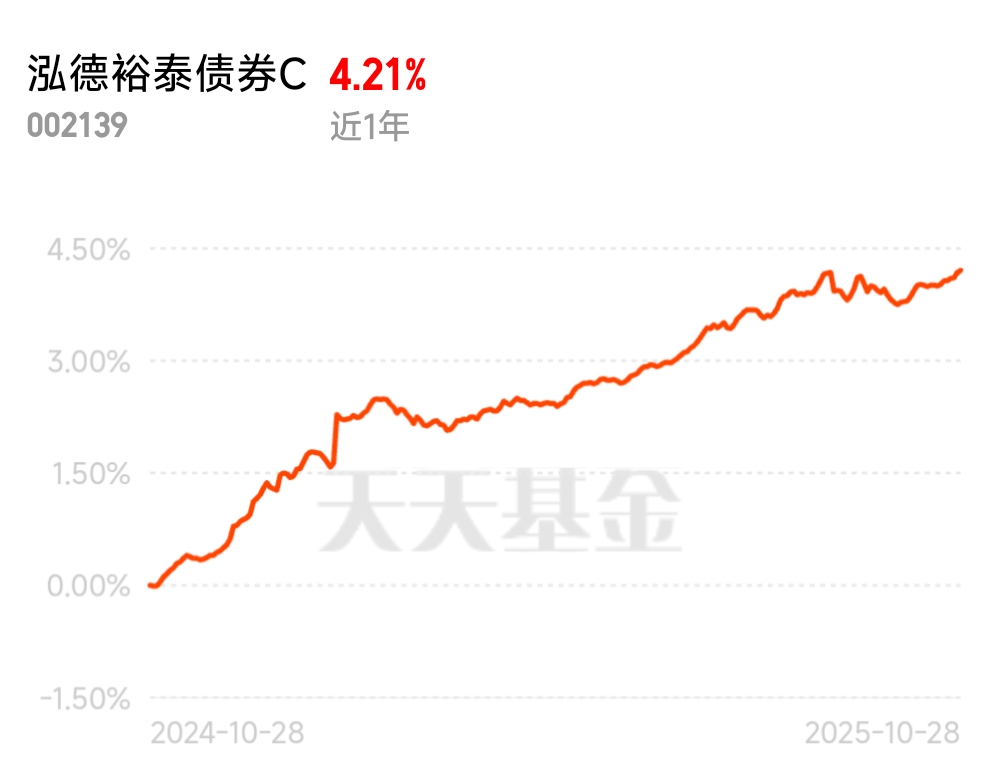 低波固收+看好泓德裕泰债券就对了,适配震荡行情性价比高,今年以来收益稳步上升,+4.21%,稳健不折腾。