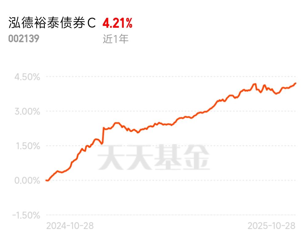 对比过不少同类产品,泓德裕泰债券的性价比让我很惊喜,今年以来收益一直稳扎稳打往上走,已经拿到4.21%的收益,比很多活期理财强多了